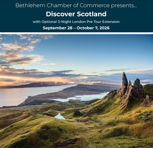 Join us for an informational session presented by Plaza Travel Center, tour operator for the Chamber's trip to Scotland in September 2026.