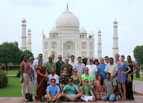 The 2013 cohort poses in front of the Taj Mahal during their 2012 international trip to India.